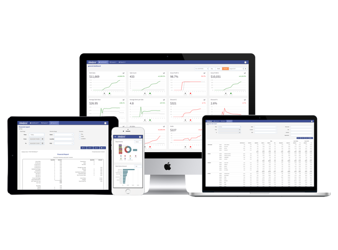 Our POS systems seamlessly integrates into your businesses' daily operations, allowing you to quickly and easily accept cash & EFTPOS payments, including contactless tap to pay from iPhone & Android smart phones, monitor inventory stock levels, implement customer loyalty programs, run customer accounts to invoice at a later date, track sales analytics reports, log employee attendance, manage accounts and much more. Click here to view all available features in our Idealpos 9 software.