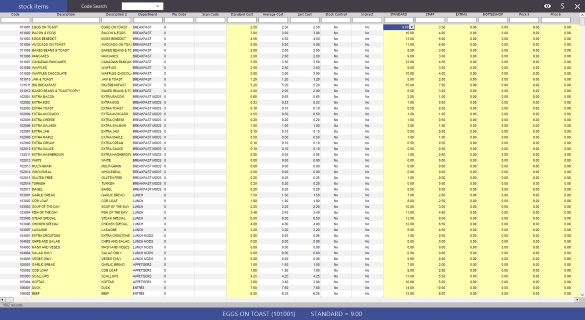 Fields that are able to be edited using Edit Mode are: Description, Description2, STD Cost, All Price Levels, Upper/Lower Limits, Points, Use Points, Sales Prompt, Non-Accumulating, Receipt, All Kitchen Printers, Scale, Instruction, Print Red, Webstore, Inhibit Disc, Stock Notes.